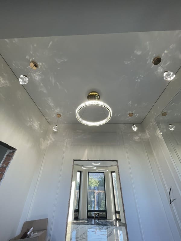 Натяжні стелі дозволяють вбудовувати різні види освітлення – від точкових світильників до LED-стрічок. Обов'язково продумайте розташування світильників ще до встановлення, щоб отримати найкращий результат.