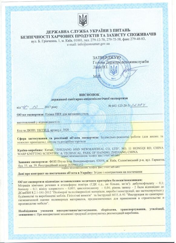 Сертифікати якості натяжної стелі New Style